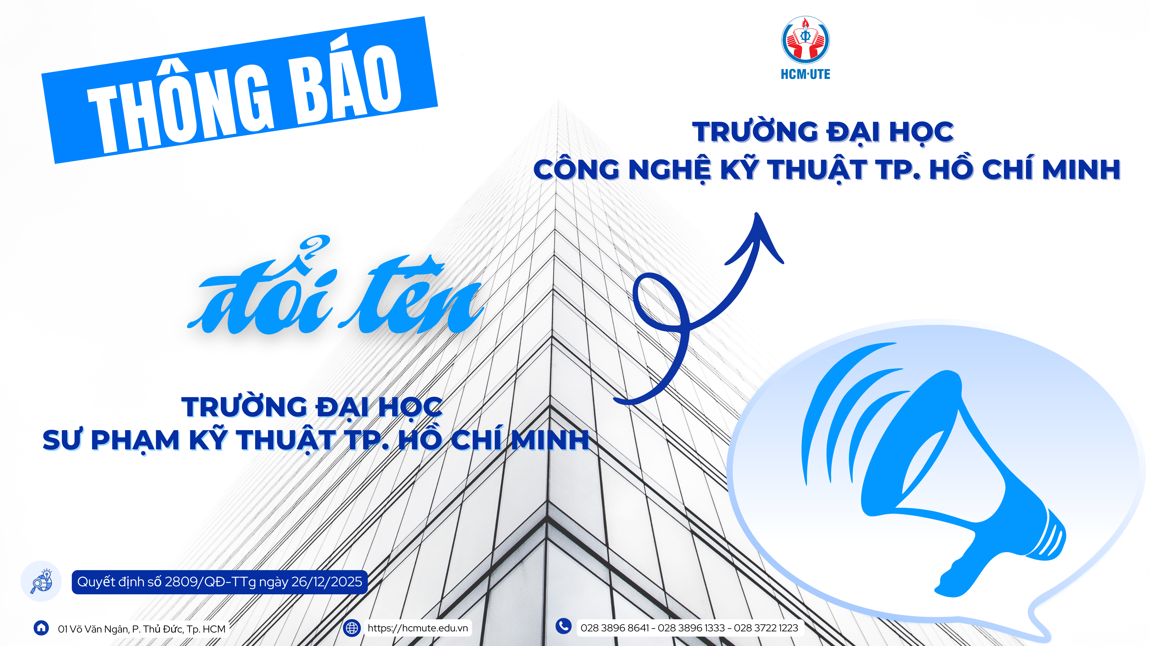 📜 Ngày 26/12/2025, Thủ tướng Chính phủ đã ban hành Quyết định số 2809/QĐ-TTg về việc đổi tên Trường Đại học Sư phạm Kỹ thuật Thành phố Hồ Chí Minh thành Trường Đại học Công nghệ Kỹ thuật Thành phố Hồ Chí Minh (tên tiếng Anh: Ho Chi Minh City University of Technology & Engineering - HCM-UTE).